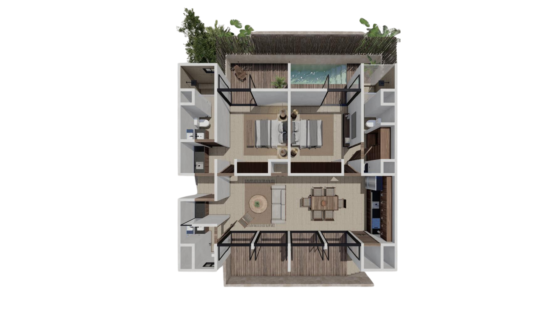 Disfruta de una terraza privada con alberca, el refugio ideal para relajarte y conectar con la esencia de Tulum.